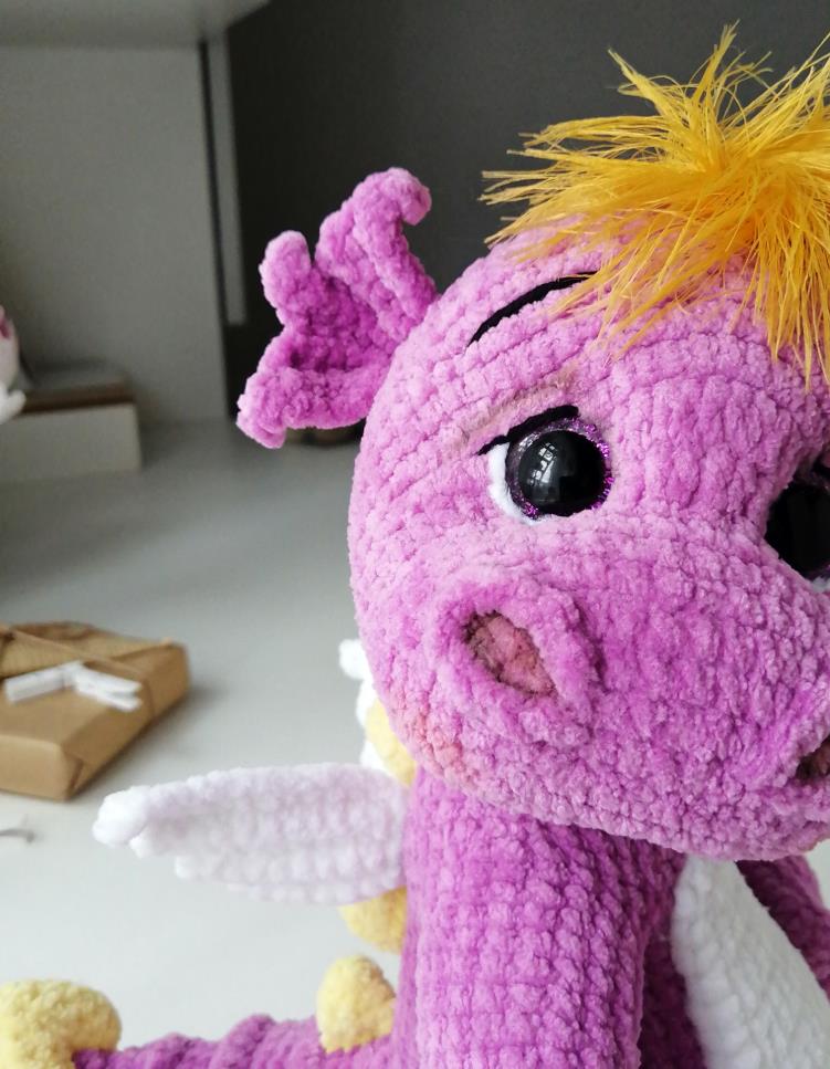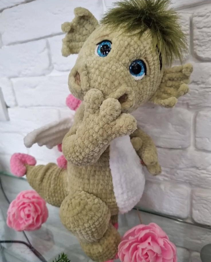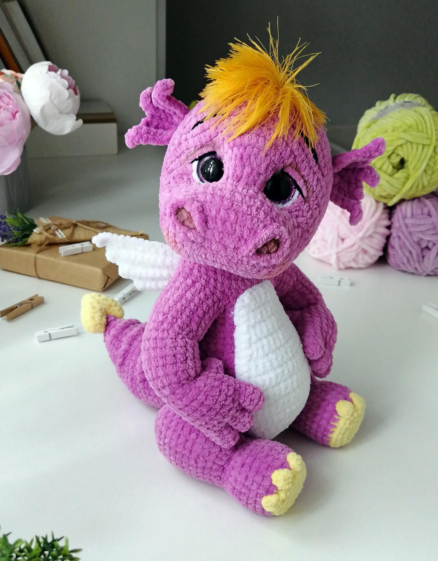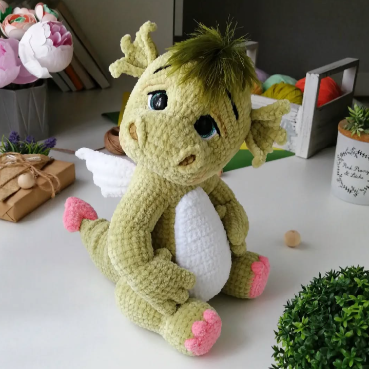 The pattern includes not only written step-by-step instructions but also photo guidance and exclusive video tutorials to help you through tricky parts like fingers, legs, shaping, and assembling. The finished dragon stands out as a cuddly companion, a whimsical gift, or a collector’s treasure.