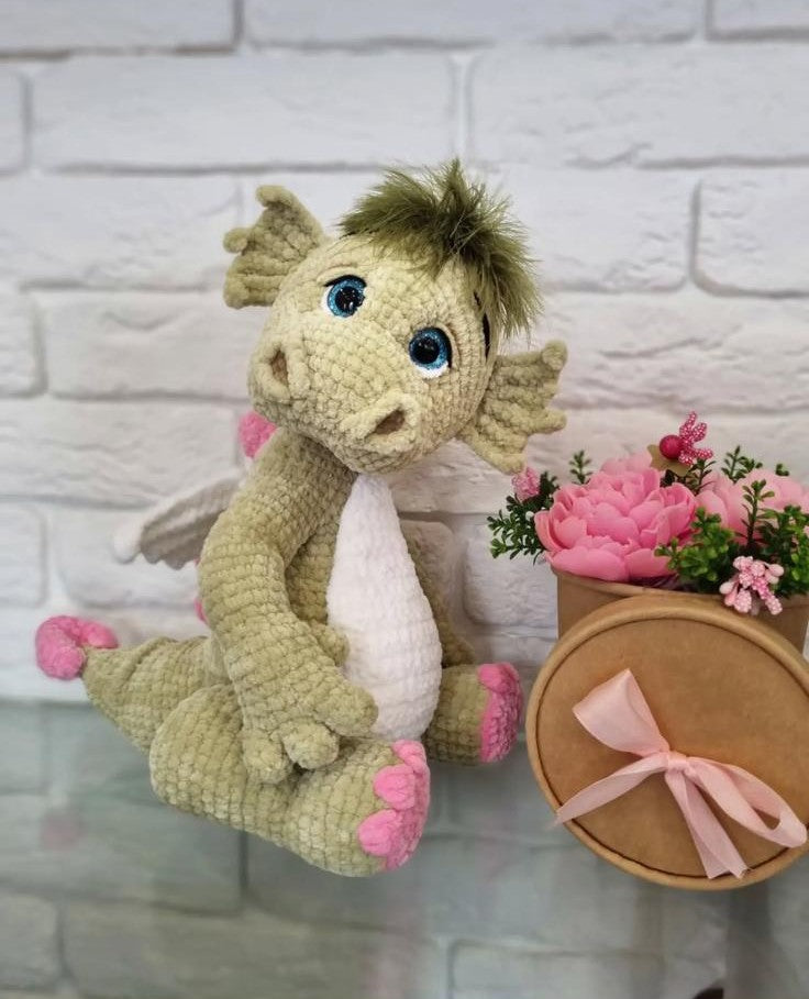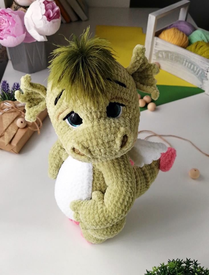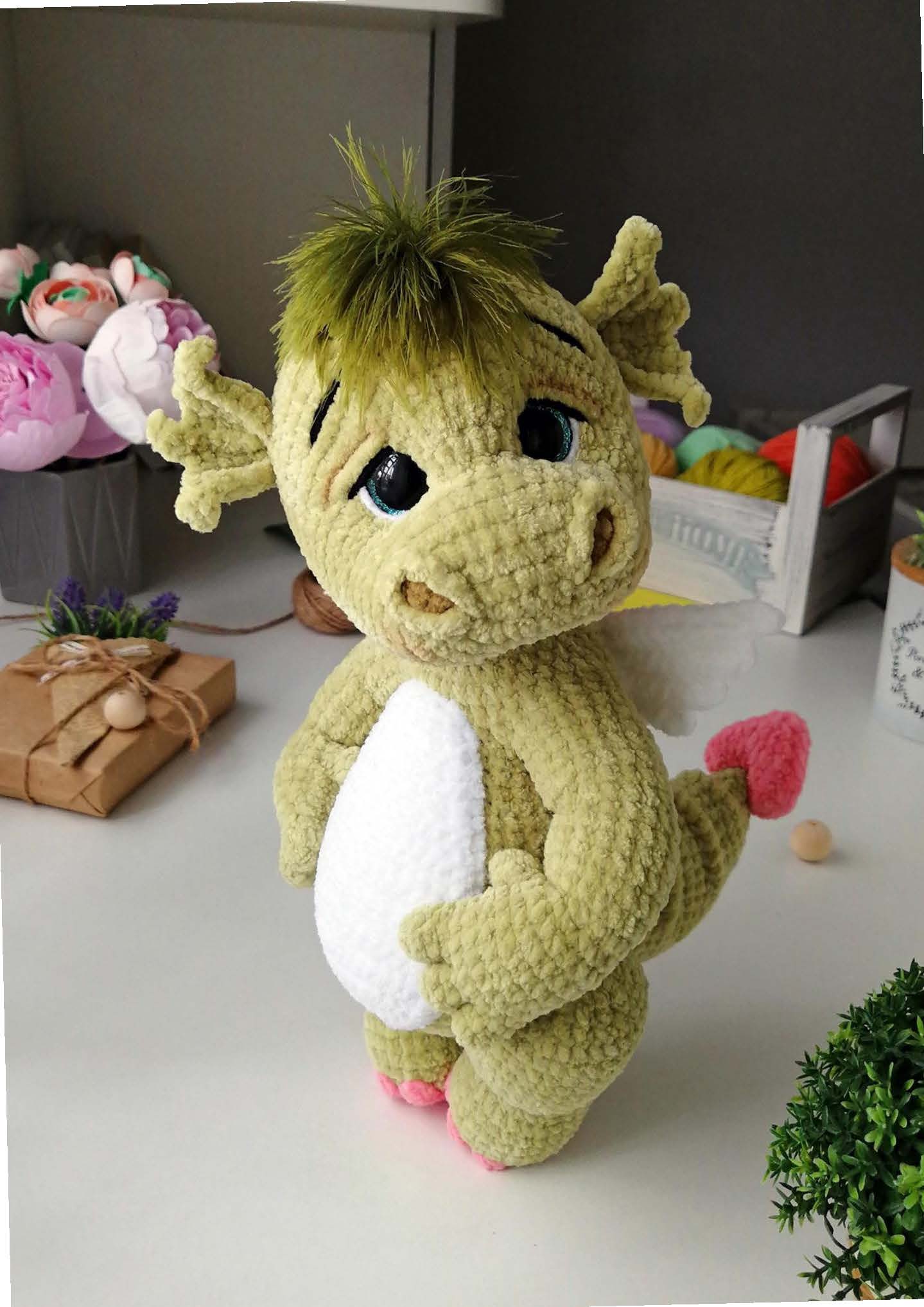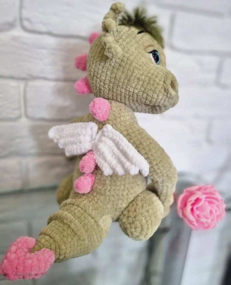 The pattern includes not only written step-by-step instructions but also photo guidance and exclusive video tutorials to help you through tricky parts like fingers, legs, shaping, and assembling. The finished dragon stands out as a cuddly companion, a whimsical gift, or a collector’s treasure.