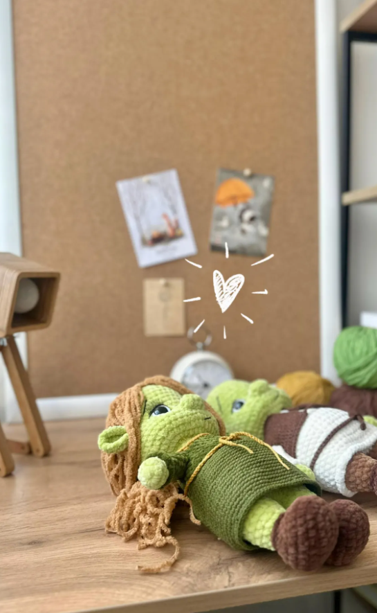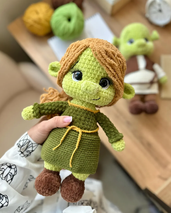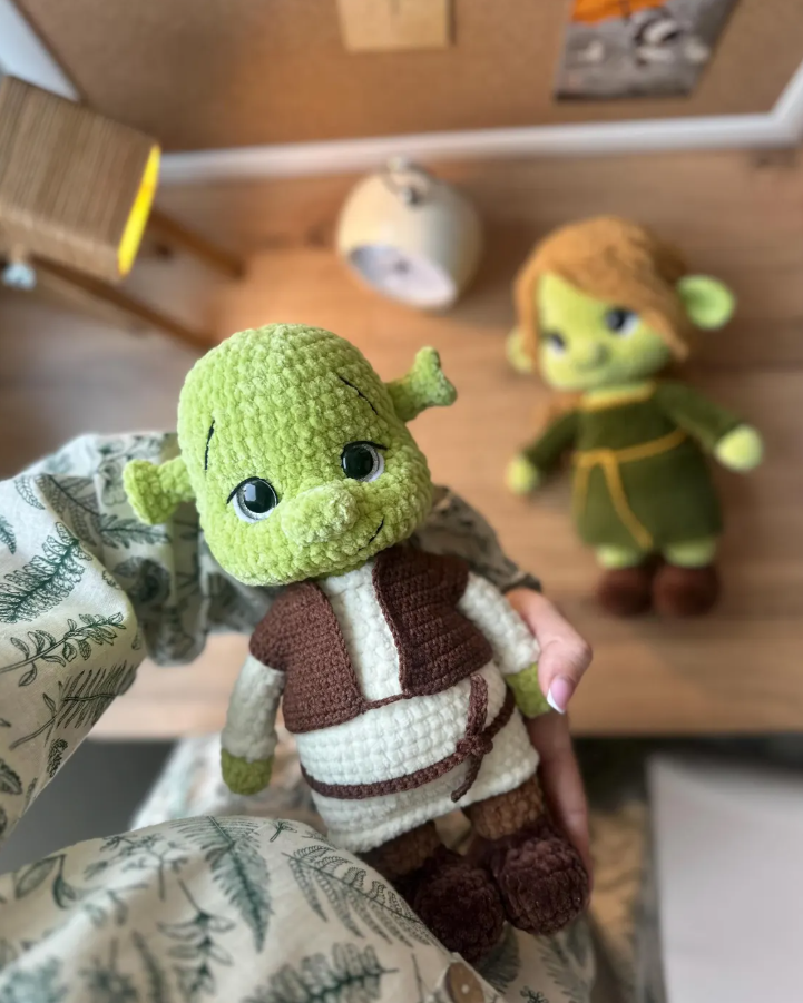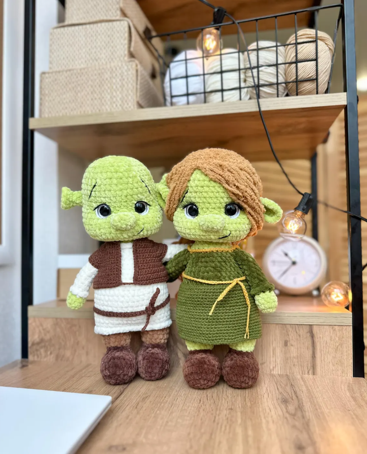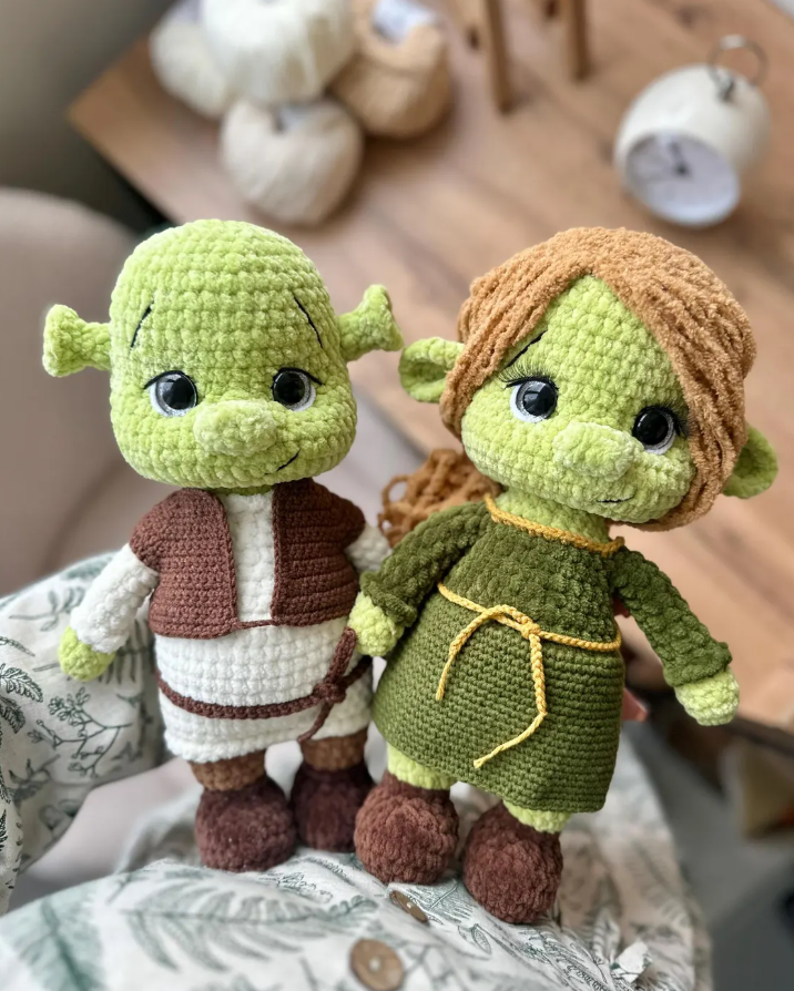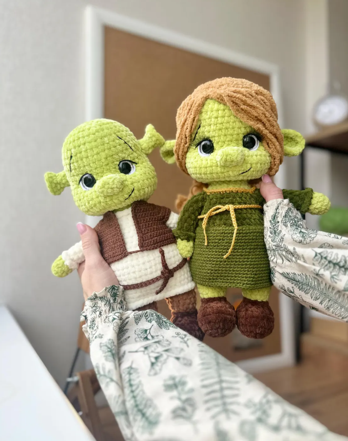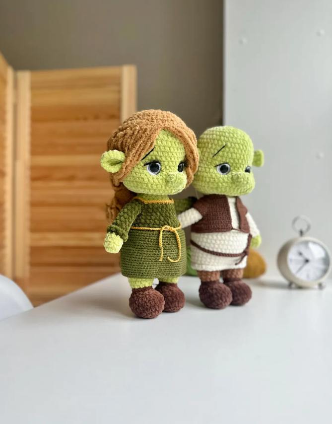 Olly comes with all the classic ogre details – a round belly, little vest, belt, and kind smile – while Flora enchants with her braided hair, pretty dress, and gentle eyes. Together, they make the perfect pair to bring fairy-tale warmth into your handmade collection.
