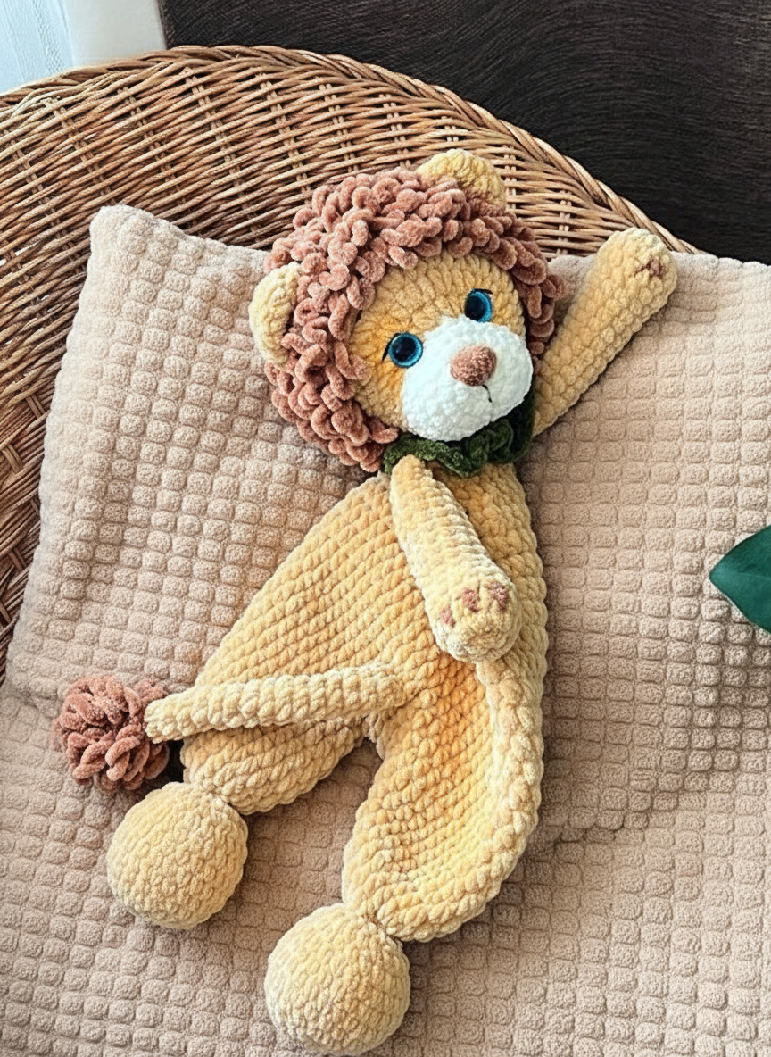 Create the softest snuggle buddy with this adorable Lion Comforter crochet pattern!