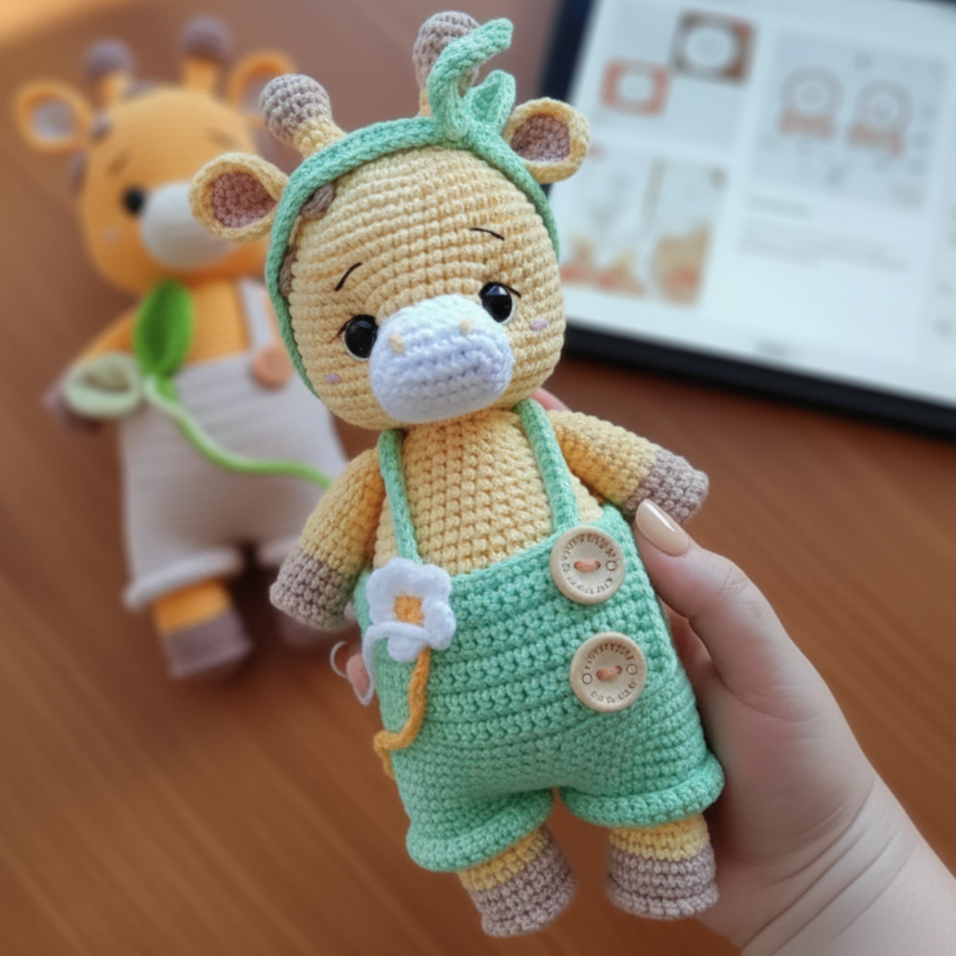 This crochet pattern is written with care to guide you step by step in creating not just one, but two giraffes, complete with their accessories and clothing. With clear US crochet terms and photo guidance, the process is smooth, fun, and rewarding.