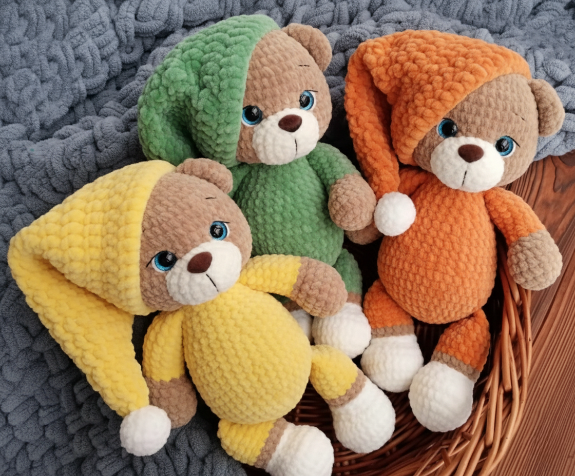 Bring to life your very own Sleepy Teddy Bear, complete with cozy pajamas, slippers, and a soft nightcap. 💤 Perfect as a cuddly companion for children, nursery décor, or a handmade keepsake full of love.